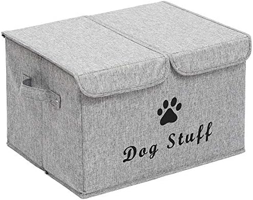 Amazon Com Fjzfing Collapsible Dog Pet Toy Box Accessory Storage Bin With Handles Organizer Storage Basket For Pet Toys Blankets Leashes And Embroidered Dog Toys Grey Pet Supplies